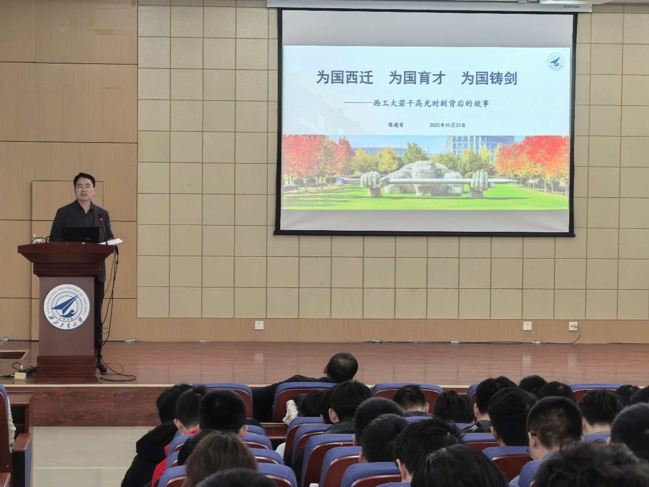 10月23日,伟德BETVlCTOR1946特邀伟德源自英国1946校务委员会副主任、原党委副书记陈建有开展《为国西迁、为国育才、为国铸剑——谈谈西工大若干高光时刻》专题讲座。讲座由伟德BETVlCTOR1946党委书记李春科主持,2025级本科生和党校学员等共同学习。