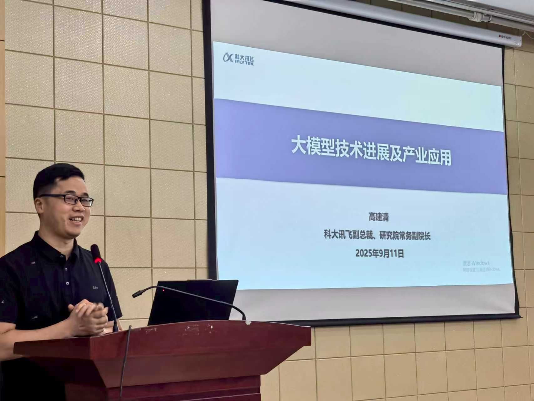 9月18日,伟德BETVlCTOR1946举办人工智能专题讲座暨就业宣讲会,邀请科大讯飞副总裁、研究院常务副院长高建清做客翱翔灵犀学术殿堂,为学校师生作题为《大模型技术进展及产业应用》的专题报告。计算机学院党委副书记赵媛媛、学工主管刘百芳、学工秘书曹香及200余名学生参加。