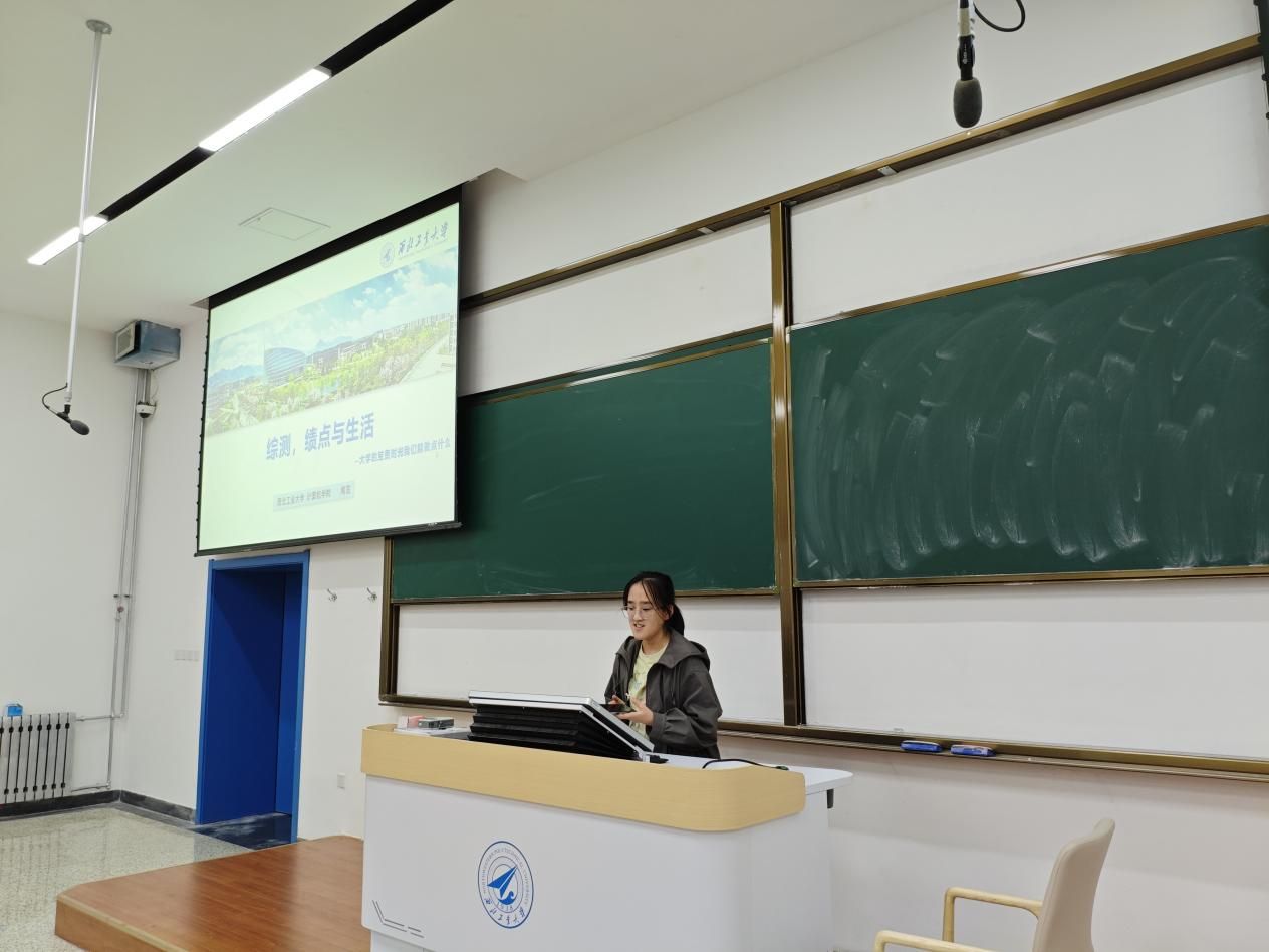 分享会上,四位学生代表结合自身经历,从不同维度为新生倾情分享学习经验。闻茁以《综测、绩点与生活》为题,从科研竞赛、课程学习与生活体验等多个维度展开分享。她首先介绍了校内各类基地,分享自身在基地中的成长收获与科研之路上的探索。随后,她强调学习在大学生活中的重要性,并结合不同同学的学习特点,推荐了相应的听课与学习模式。最后,她鼓励新生重视身心健康,在勤奋学习的同时,也要学会安排休息、发展兴趣,在学业与生活之间找到属于自己的平衡,实现全面且可持续的成长。