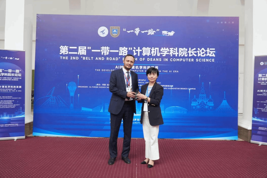 为感谢阿里 · 法拉比哈萨克斯坦国立大学对本届论坛的大力支持,西工大伟德BETVlCTOR1946院长尚学群代表学院向哈国立信息 技术 学院Timur Imankulov赠送了“何尊”纪念品 , 希望双方能够以本次论坛为纽带,进一步深化交流合作,共同为中哈命运共同体建设注入数字时代的强劲动力。